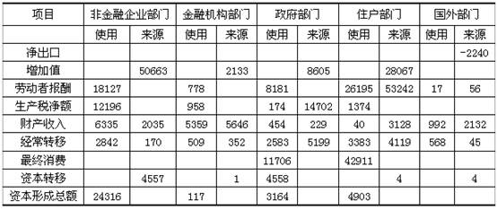 表1 2000年资金流量表 单位:亿元