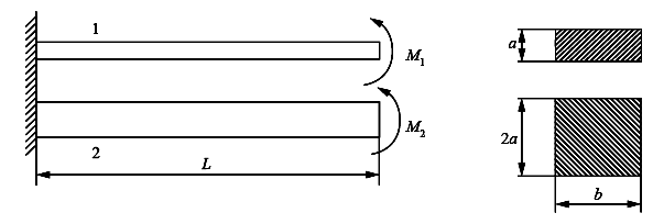 [单选题]两根矩形截面悬臂梁,弹性模量均为E,横截面尺寸如图,两梁的载荷均为作用在自由端的集中力偶,已知两梁的最大挠度相同,则集中力偶Me2是Me1的( )。