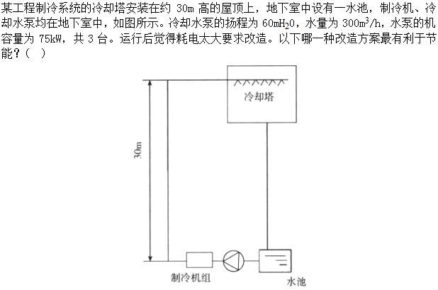 [单选题]A.取消水池B.改造管道C.将冷却水泵改在屋顶D.换冷却塔
