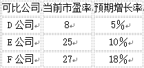 C公司的每股收益是1元,其预期增长率是12%。为了评估该公司股票价值是否被低估,收集了以下3个可比公司的有关数据: