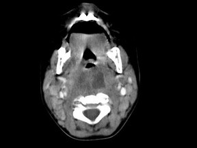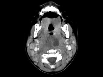 [多选题] 10个月大的婴儿,发热,曾患中耳炎,CT扫描如图所示,请选择正确的描述或诊断()A .咽后壁软组织肿胀B .其内密度不均C .颈椎骨质未见明显异常D .考虑为咽后壁脓肿E .考虑为咽后壁寒性脓肿