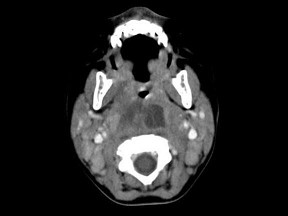 [多选题] 10个月大的婴儿,发热,曾患中耳炎,CT扫描如图所示,请选择正确的描述或诊断()A . 咽后壁软组织肿胀B . 其内密度不均C . 颈椎骨质未见明显异常D . 考虑为咽后壁脓肿E . 考虑为咽后壁寒性脓肿