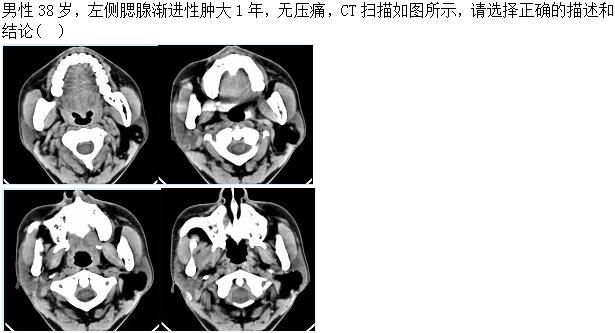 A.左侧腮腺区见低密度肿块,CT值约为-200HU