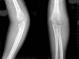 [单选题]女,6岁,外伤后左肘部肿痛,活动受限,外髁局部压痛,X线摄片如图,最可能的诊断是()A .左肱骨小头骨骺损伤B .左肱骨髁上骨折C .左肱骨外上髁骨骺损伤D .左肱骨内髁骨骺损伤E .左肱骨外髁骨骺损伤