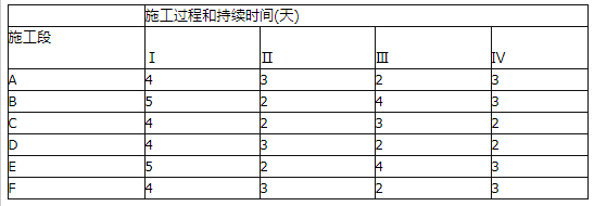 已知某工程施工持续时间见表2-5。为缩短计划工期,允许第Ⅰ和第Ⅱ施工过程之间搭接1天,施工过程Ⅱ完成后,要技术间歇2天,第Ⅲ和第Ⅳ施工过程之间有1天的组织间歇。按照流水施工组织,其最短总工期为( )天。