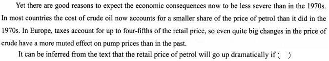 [单选题]A.price of crude risesB.commodity prices riseC.consumption risesD.oil taxes