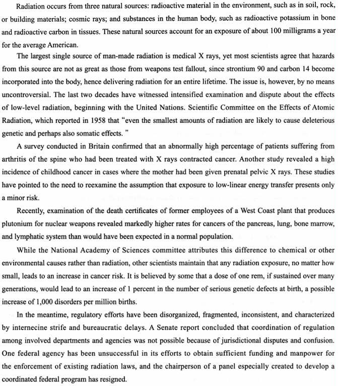It can be inferred from the last paragraph of the passage that the chairperson who resigned from the panel to develop a coordinated federal program for radiation regulation most likely did so because( )A.he or she disagreed with the findings of the Senate committee