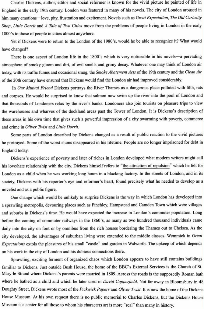 Wemmick,in Great Expectation might work in the city of London and( )A.live in suburbs