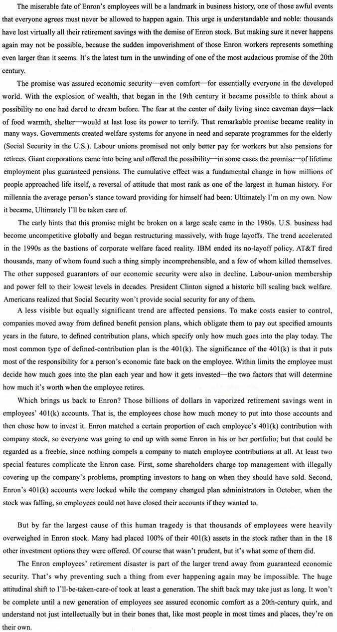[单选题]阅读文章,回答问题。Which of the following statement BEST summarizes the meaning of t