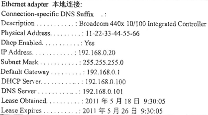 图1 在DHCP客户机执行ipconfig/all获取的部分信息