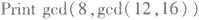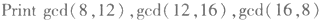 [单选题]下面是求最大公约数的函数的首部:若要输出8、12、16三个数的最大公约数,下面正确的语句是( )。A.Printgcd(8,12),gcd(12,1