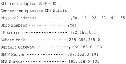 [问答题]网络管理员使用DHCP服务器对公司内部主机的IP地址进行管理。在DHCP客户机上执行“ipconfig/all”得到的部分信息如图(a)所示,该客户机