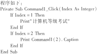 窗体上的3个命令按钮构成名称为Command1的控件数组,如图所示。