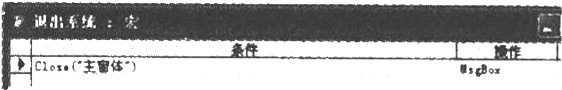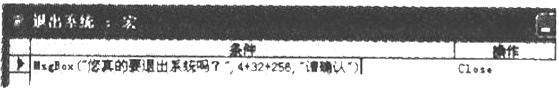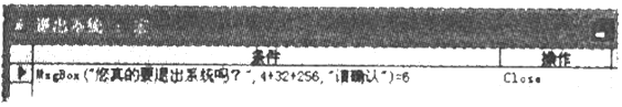 为了达到这样的运行效果,在设计主窗体时为“退出系统”按钮的“单击”事件设置了一个“退出系统”宏。正确的宏设计是( )。