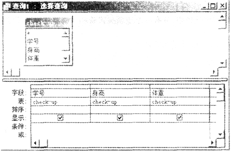 C.查询符合“check-up”条件的记录,显示学号、身高和体重