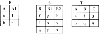 有三个关系表R、S和T如下,其中三个关系对应的关键字分别为A,B和复合关键字(A,B)。