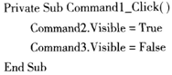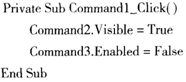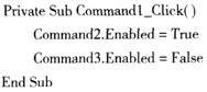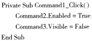 窗体中有3个命令按钮,分别命名为Command1、Command2和Command3。当单击Command1按钮时,Command2按钮变为可用,Command3按钮变为不可见。下列Command1的单击事件过程中,正确的是( )。