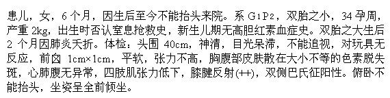 患儿的运动水平相当于几个月的婴儿()A.1个月
