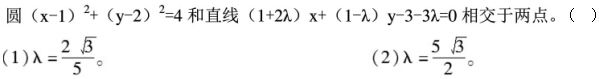 [单选题]A.条件(1)充分,但条件(2)不充分。B.条件(2)充分,但条件(1)不充分。C.条件(1)和条件(2)单独都不充分,但条件(1)和条件(2)联合起
