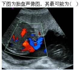 [单选题]A.正常胎盘声像图B.胎盘绒毛膜血管瘤C.胎盘血窦D.胎盘早剥E.胎盘植入