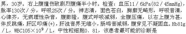 [单选题]A.肾破裂B.胃十二指肠穿孔C.肝破裂D.脾破裂E.小肠破裂
