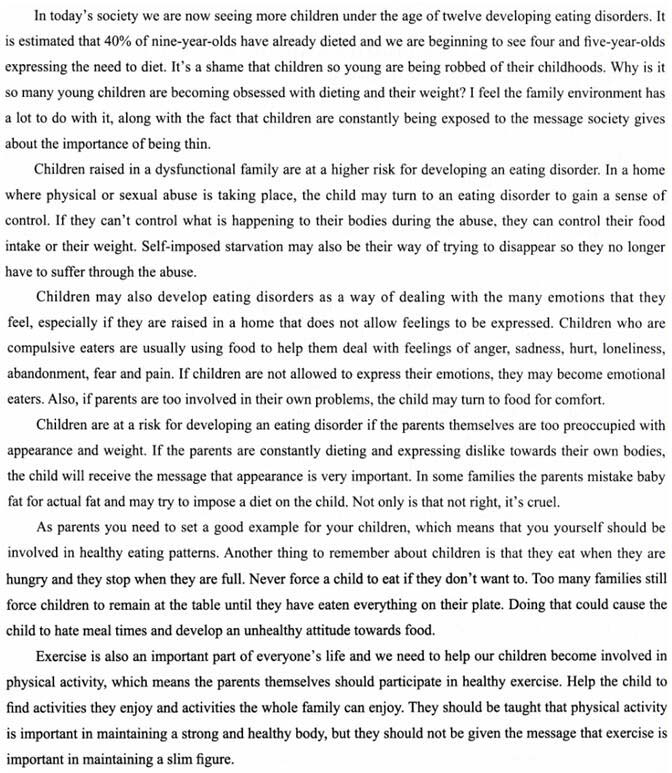 B.the reason why children are suffering from eating disorders