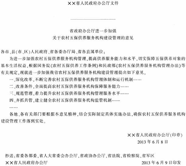 [单选题]以下四项指出了公文中确实存在的错误,其中修改正确的是( )。A.公文标题应为“省政府办公厅进一步加强农村五保供养服务机构建设管理的意见”B.各主送机关