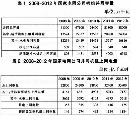 关于2008~2012年间国家电网公司清洁能源的发展,能够从资料中推出的是:A.核电上网电量保持持续增长