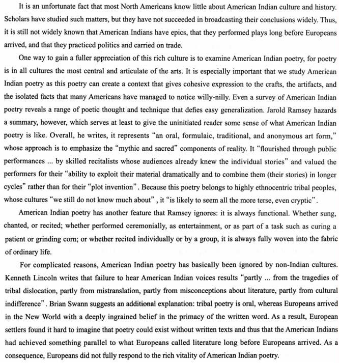 [单选题]阅读文章,回答问题。According to the passage,American Indian cultures have produced a
