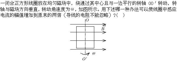 [单选题]A.把线圈的匝数增加到原来的两倍B.把线圈的而积增加到原来的两倍,而形状不变C.把线圈切割磁力线的两条边增长到原来的两倍D.把线圈的角速度ω增大到原来